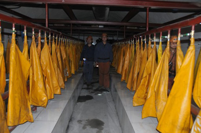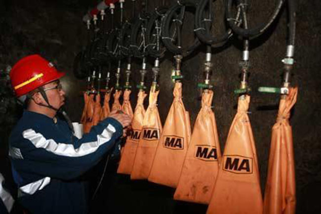 ZYJ-D壓風(fēng)自救裝置,也叫桿式自救器,布袋式壓風(fēng)自救裝置。一般形成系統(tǒng)后使用,即由若干組壓風(fēng)自救裝置安裝在同一個(gè)地點(diǎn)形成壓風(fēng)自救站,每組一般由3~5個(gè)頭組成,布袋式壓風(fēng)自救裝置每個(gè)地點(diǎn)裝多少個(gè)頭,應(yīng)視該工作場(chǎng)所的工作人數(shù)而定,其安裝頭數(shù)應(yīng)大于在該場(chǎng)所工作的人數(shù)。該裝置系統(tǒng)結(jié)構(gòu)簡(jiǎn)單,價(jià)格便宜,是一種經(jīng)濟(jì)型自救裝置系統(tǒng)。