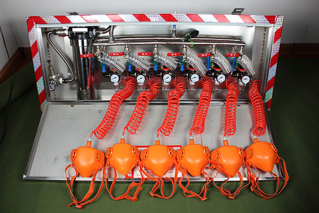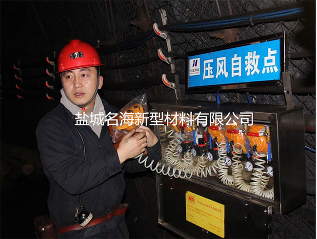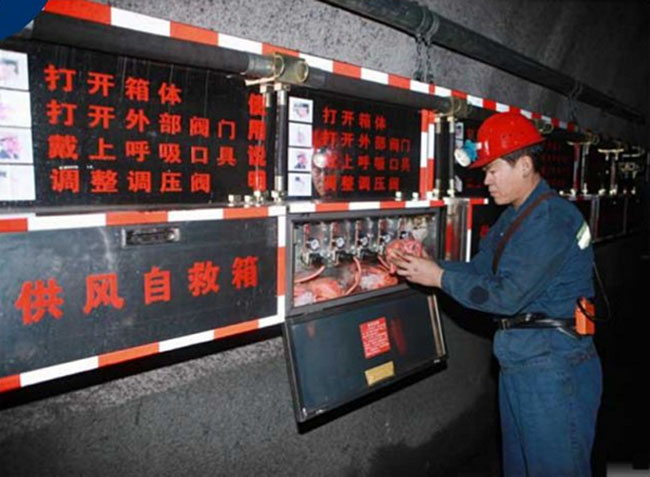礦井壓風(fēng)供水自救裝置:該裝置主要用于具有煤與瓦斯突出的煤礦井下救災(zāi)防護(hù)與壓風(fēng)、供水自救器配套使用。它安裝在煤礦井下硐室或采煤工作面的機(jī)巷風(fēng)巷掘進(jìn)頭的適當(dāng)位置或流動(dòng)人員較多的地點(diǎn),以及溜子頭、井底車場(chǎng)、運(yùn)輸和回風(fēng)巷道、支架、單體液壓支柱、各種站房等地。當(dāng)發(fā)生巷道冒頂,煤與瓦斯突出時(shí)或有突出預(yù)兆時(shí),工作人員跑步進(jìn)入附近安裝有呼吸器和供水設(shè)備的場(chǎng)所避災(zāi),既可以呼吸也可飲用到干靜的水。